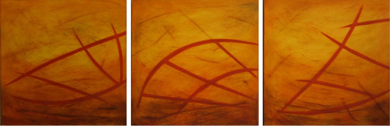 In the painting, “Secrets in the Field” (the title borrowed from a book on crop circles by Freddy Silva), I was attempting to emanate the energy swirling around the field, thus the curving lines and arcs. It was the energy I was painting -perhaps an earthy energy stirred up by the process – not so much the formation in the crop. At that point in my painting, I was very much dedicated to using earth tones – warm ochres, orange, reds, umbers, black. (I’ve since added blues to my palette :)) Today, I might approach it differently but that’s the artist’s perogative. I paint from the heart, vs the head, and rarely know what will emerge when I approach the canvas. But I was very happy with this piece and felt it captured a certain essence of energy.