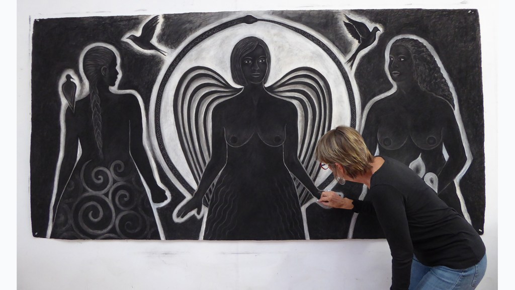The Sacred Feminine Trilogy. Watch as a Large Charcoal Drawing develops in the Studio.